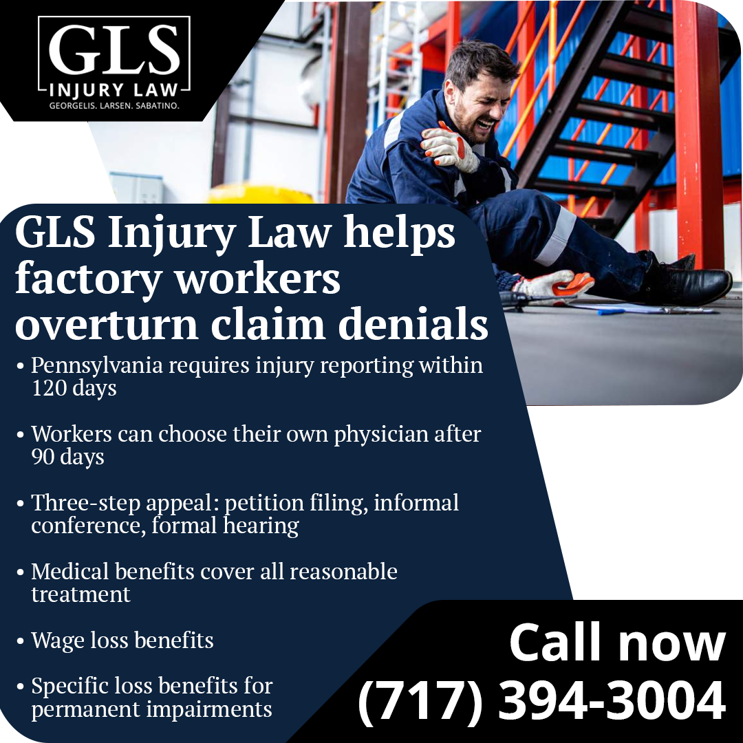 Lancaster, PAGLS Injury Law, P.C. continues helping factory workers throughout Lancaster County recover compensation after the claim denials. The law firm handles hundreds of denied claims annually and fights insurance company tactics designed to avoid paying legitimate benefits to injured workers.