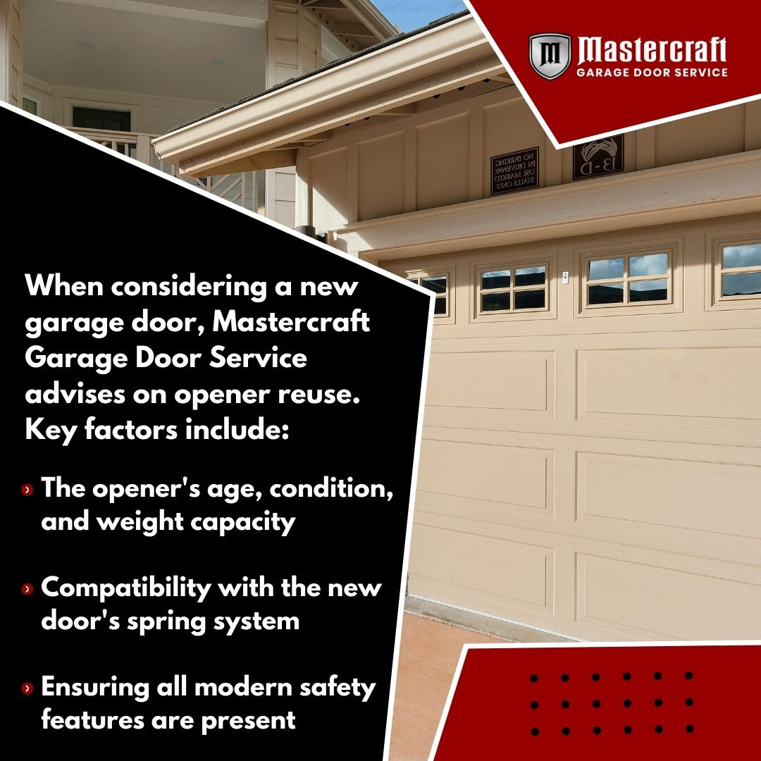Mastercraft Garage Door Service identifies three scenarios where opener reuse makes technical and financial sense.